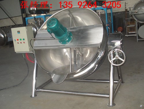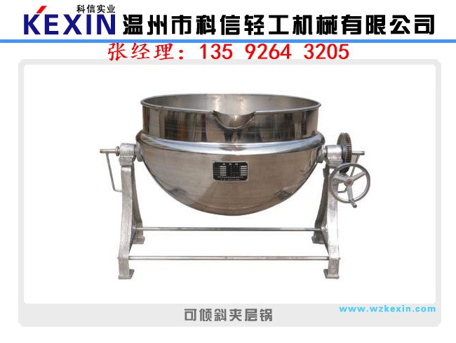夹层锅又名蒸汽锅、蒸煮锅、夹层蒸汽锅。通常由锅体和支脚组成。锅体是由内外球形锅体组成的双层结构形式,中间夹层通入蒸汽加热。有固定式、可倾式、搅拌式等样式。夹层锅具有受热面积大、热效率高、加热均匀、液料沸腾时间短、加热温度容易控制、外型美观、安装容易、操作方便、安全可靠等特点。夹层锅广泛应用于各类食品的加工,也可用于大型餐厅或食堂熬汤、烧菜、炖肉、熬粥等,是食品加工提高质量、缩短时间、改善劳动条件的良好设备。