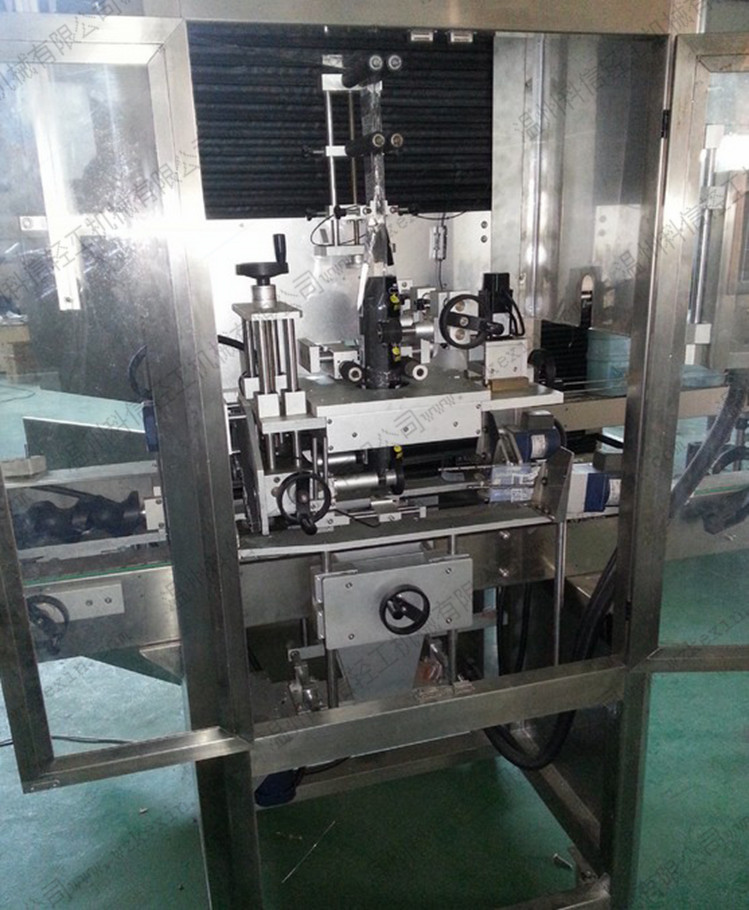 当推瓶电眼发现有瓶子过来并认为有连续生产之必要的时,进瓶螺杆开始运作推瓶(进瓶螺杆的作用就是将不等距而来的瓶子从新等距 等初速度分瓶),瓶子进入套标系统的核心单元,当套标电眼感应到有瓶子过来,马上将信息传输给控制中心 PLC ,并通过 PLC 依次、连续下达 4 个指令:送标、定位、切标、射标,当射标结束,一个瓶子的套标过程完成,之后进入标签整理、收缩单元。